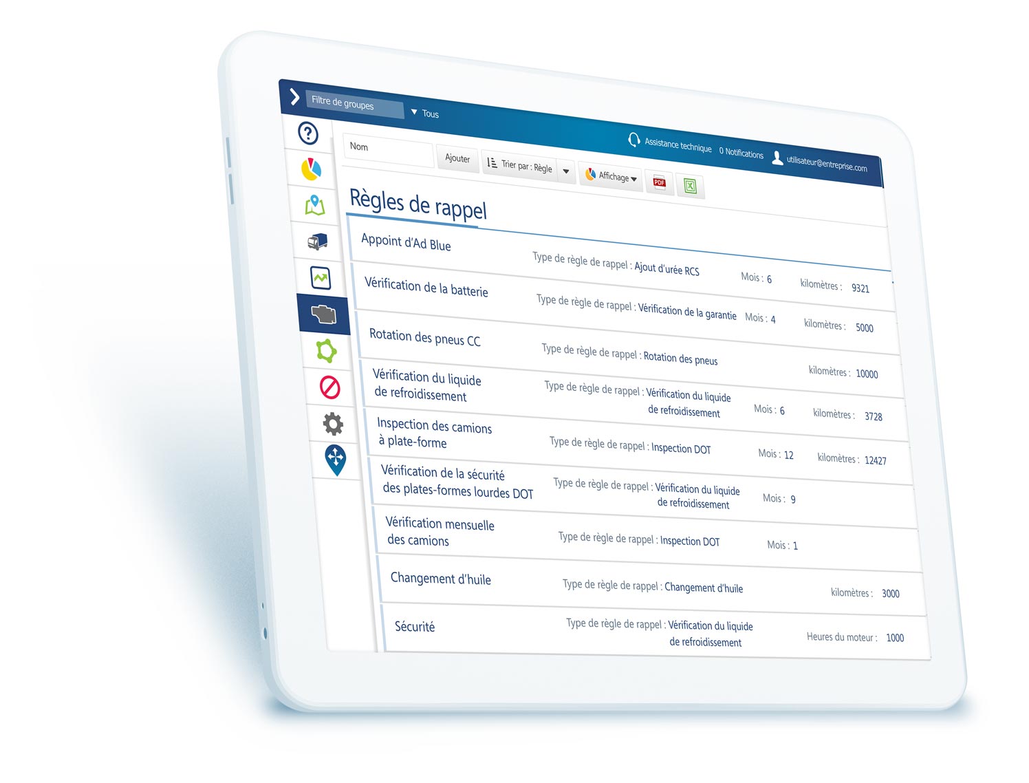 Établissez des règles et créez des alertes afin d’améliorer la gestion de vos tournées et gérer les temps d’inactivité de vos véhicules.